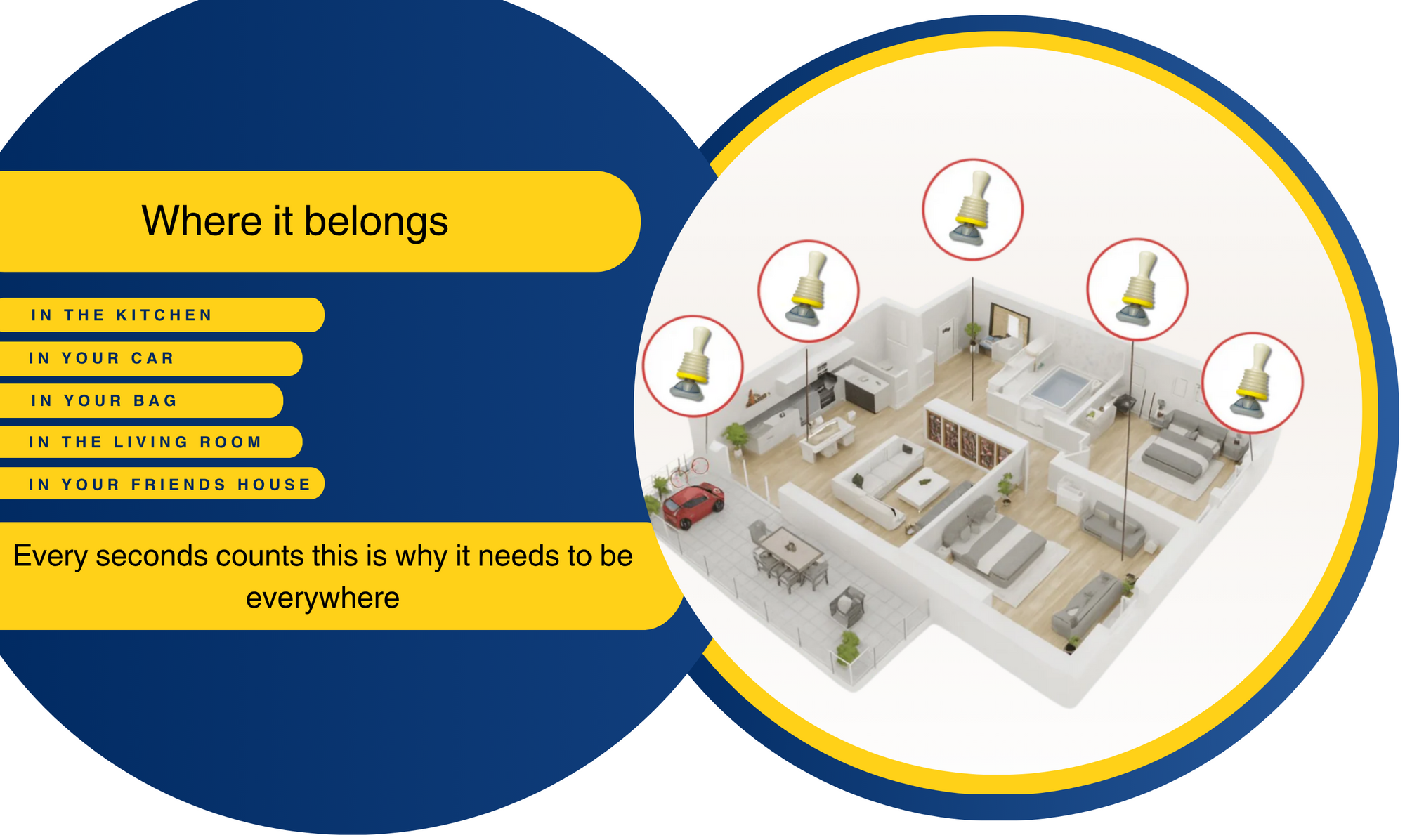Everywhere, at the garage, inside your car, in the kitchen, inside your bag. every place for easy access.