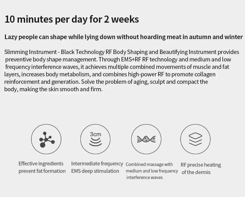 TIGHTENED SKIN - This body sculpting massager, when used regularly, activates collagen production in the deep layers of the skin, does not heat up, works effectively with small pulses